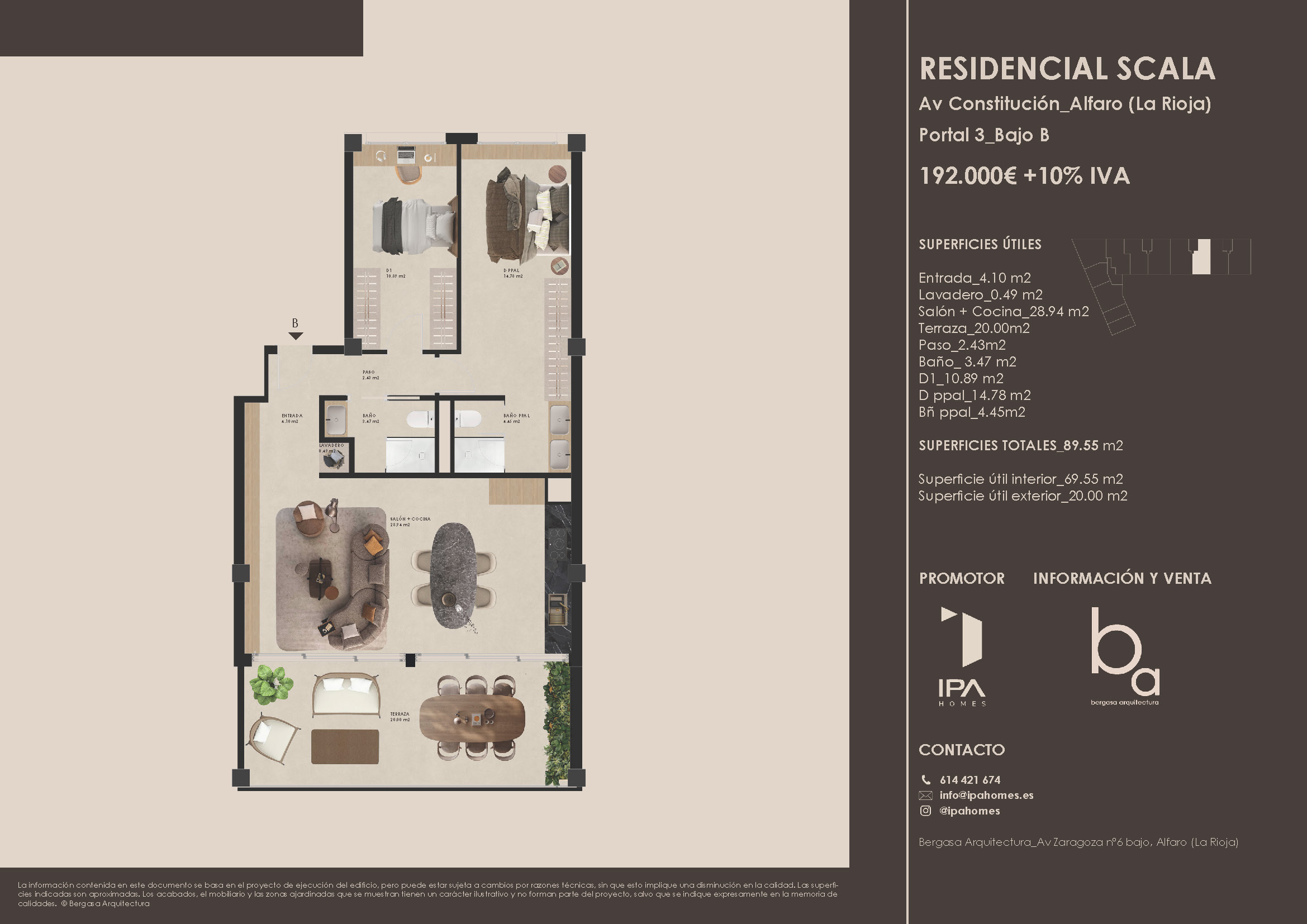 Vivienda de 2 dormitorios, con espacios interiores de 60 a 70 m², diseñada para combinar comodidad y funcionalidad. Dispone de terrazas atractivas, ideales para disfrutar del aire libre y de momentos de relax.